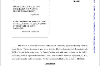 Judge Rejects Request to Block South Carolina's Voter Registration Data from Going to DOJ