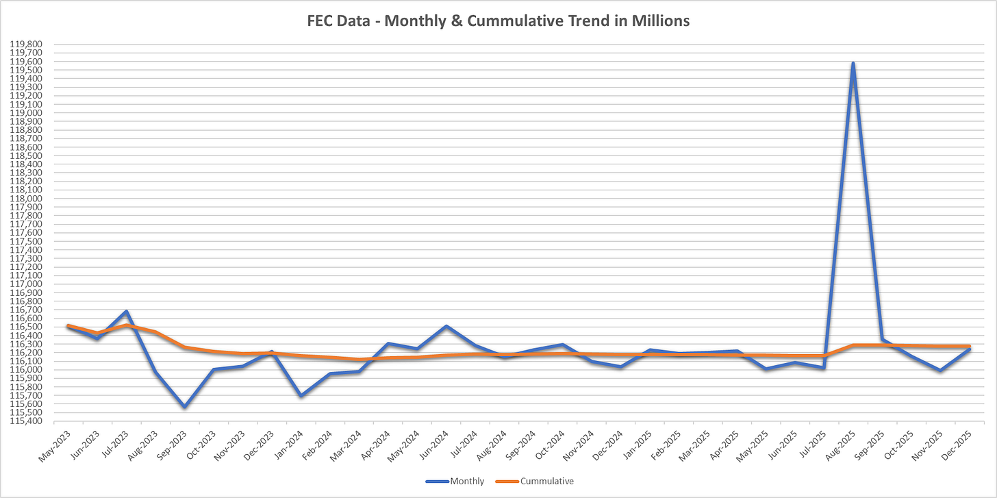 This is an end-of-year update and follow-up to my July 28, 2025, article, Alleged FEC Campaign Money Laundering Continues, and my Feb 14, 2025, article, Will New FEC Continue to Overlook Alleged Campaign Money Laundering?