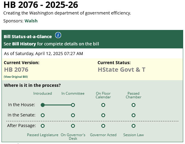 HB 2076 - 2025-26 Creating the Washington Department of Government Efficiency