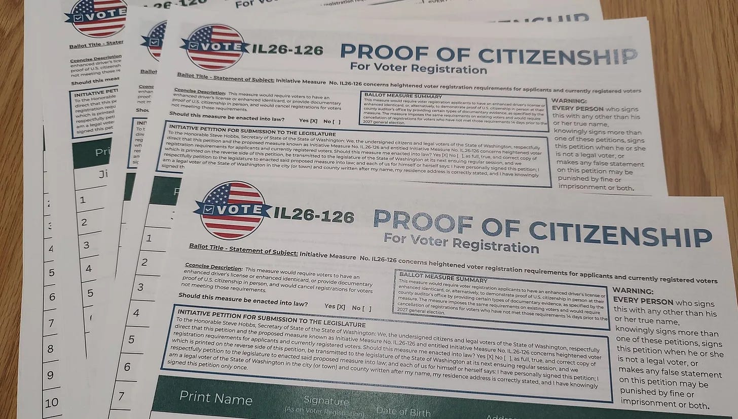 Initiate a process to help clean up Washington’s current voter rolls, removing individuals who cannot prove their citizenship.